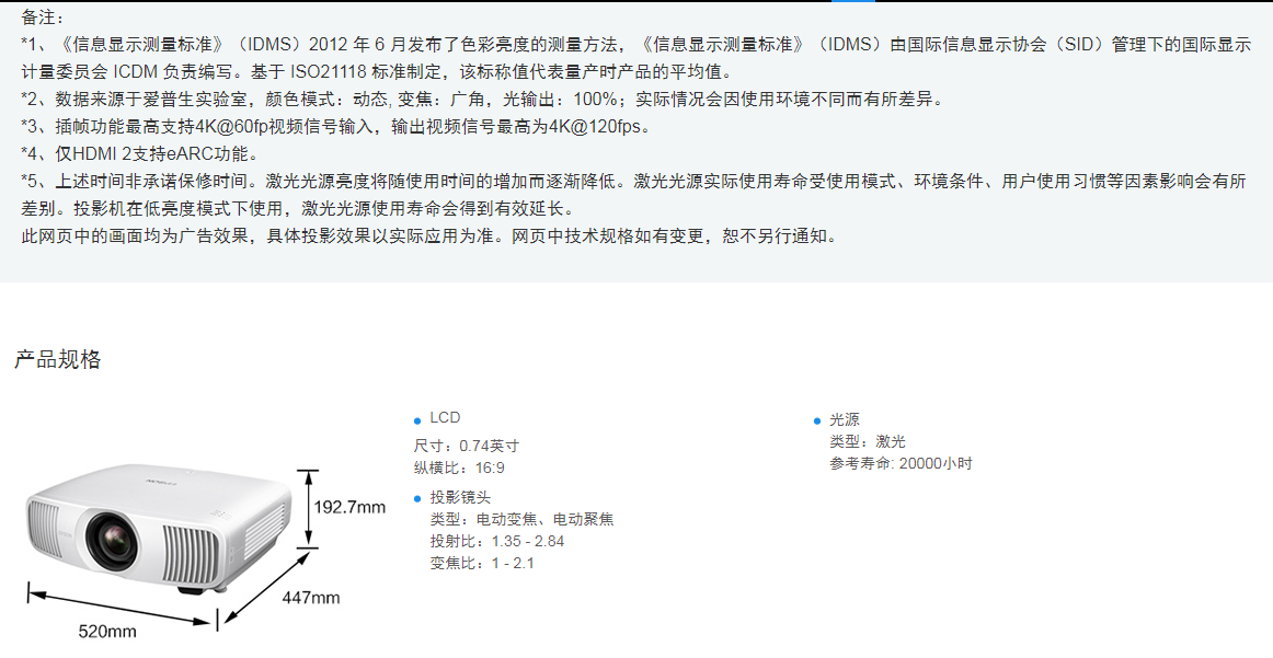 | 產(chǎn)品名稱(chēng): | 激光4K專(zhuān)業(yè)家用投影機 |